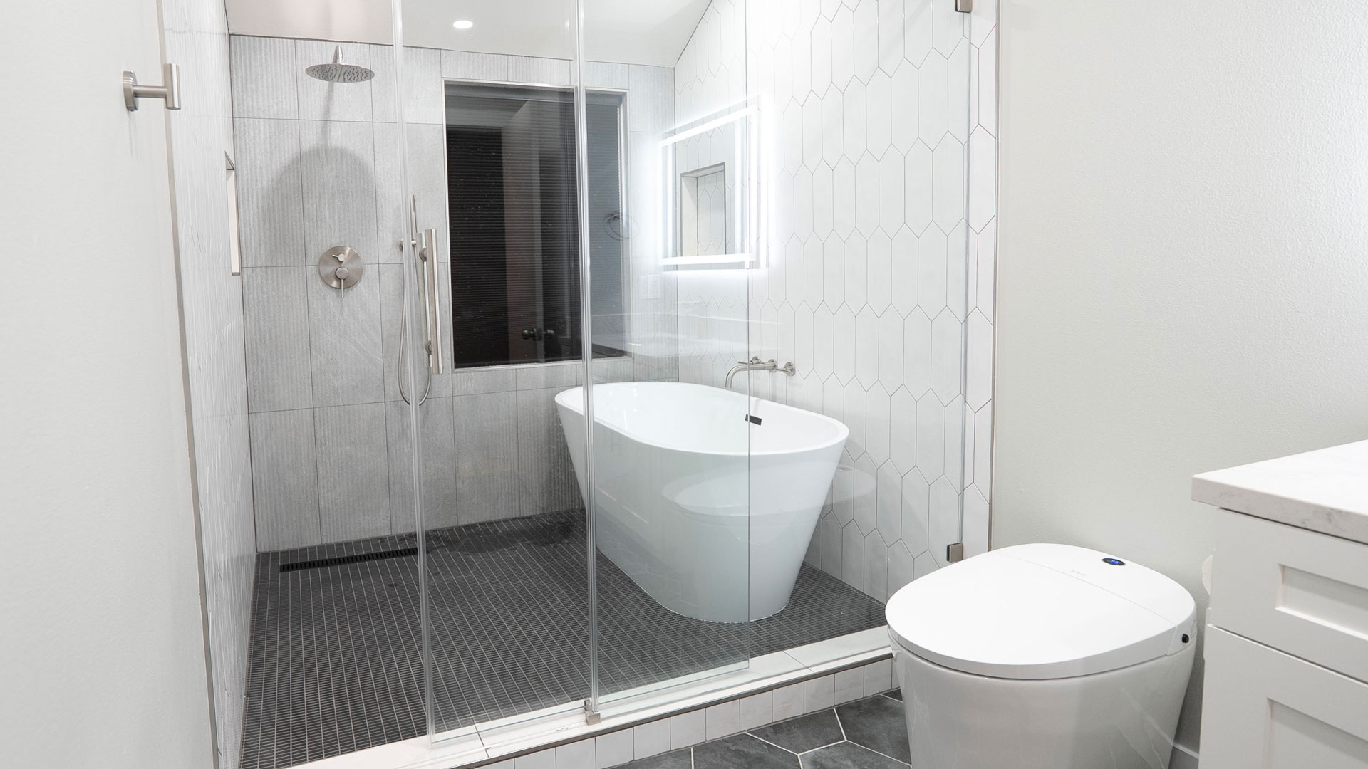 A Complete Single Bath Transformation with Walk-In Shower and Freestanding Tub