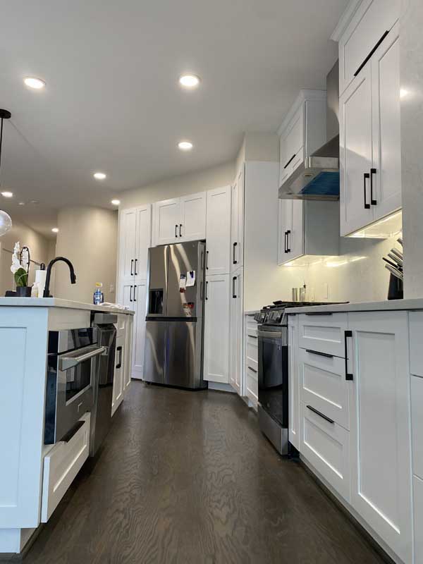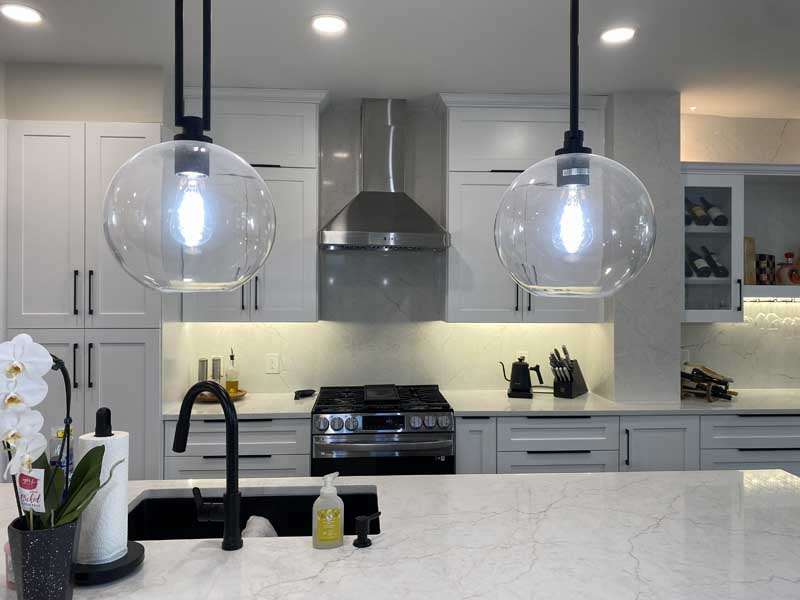 The existing electrical panel was a 100-amp service from 1994. Modern kitchens with induction cooktops, convection ovens, and multiple small appliances require a minimum of 200-amp service. We upgraded the entire panel, new 200-amp service entrance, modern circuit breakers, dedicated 20-amp circuits for small appliances, and proper GFCI protection for all counter outlets.