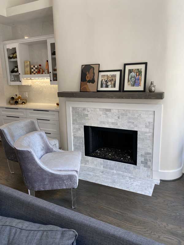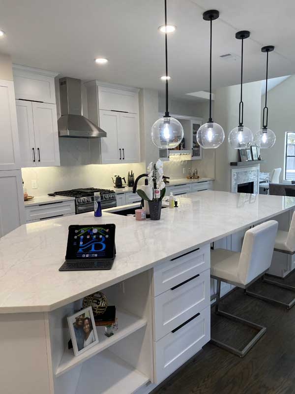When you walk into this Houston home now, you’re greeted by 520 square feet of open-concept kitchen and living space that feels twice as large as the footprint suggests. White shaker cabinets reach the ceiling, a waterfall-edge marble island seats four comfortably, and glass globe pendants cast warm light across Calacatta countertops. Eleven weeks ago, this was a choppy, dated space with builder-grade finishes and a layout that did not reflect how people actually live.