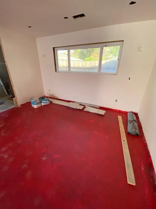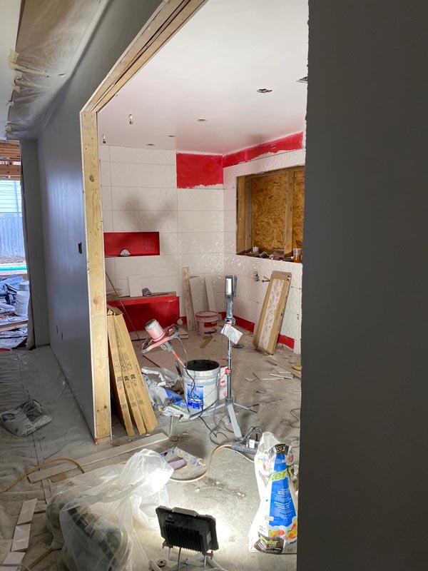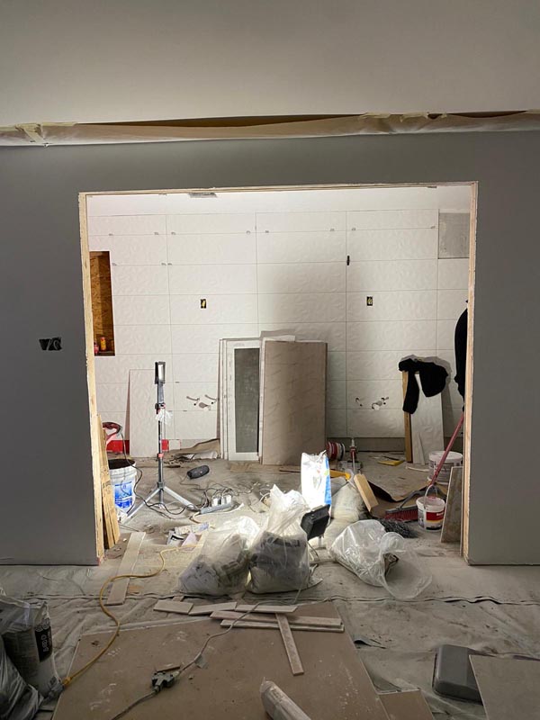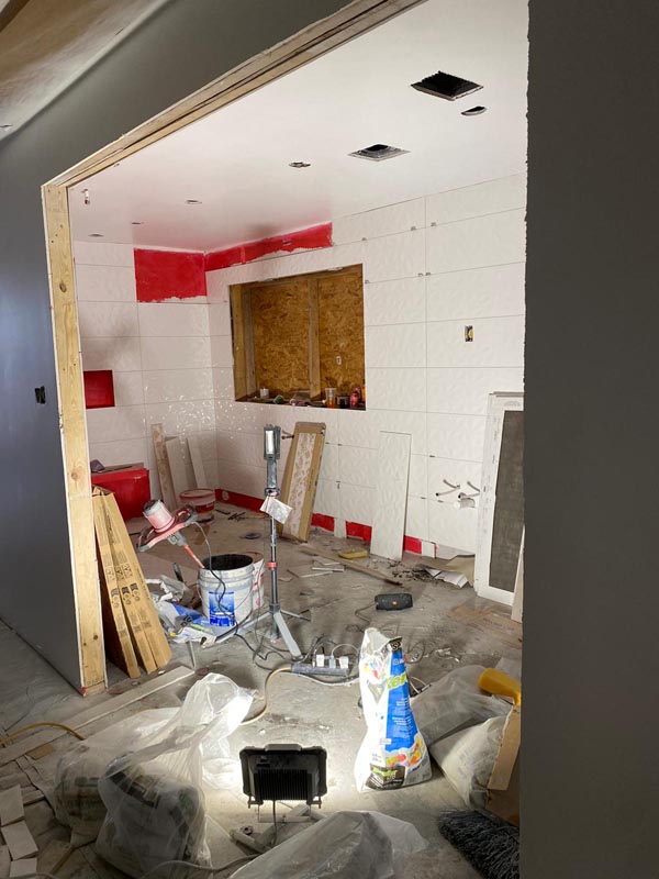 • New plumbing lines to accommodate the freestanding tub location