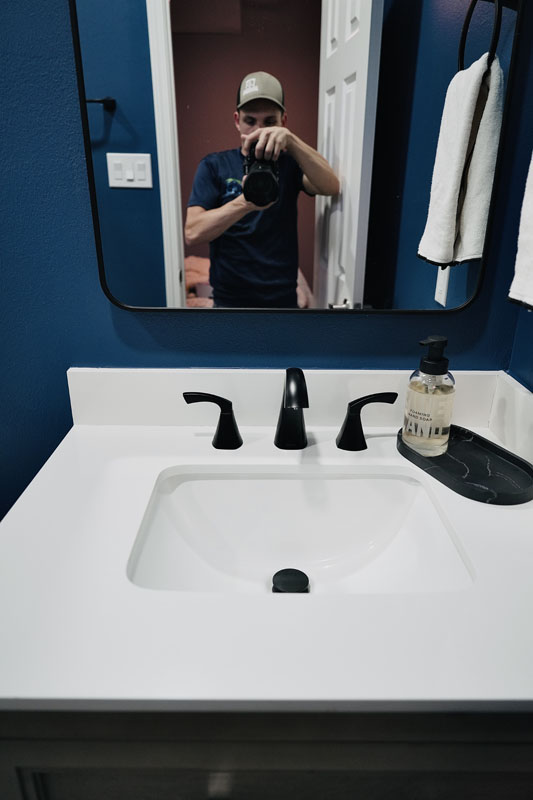 Vanity Setup: $800-$1,400 — Cabinet, quartz countertop, sink, faucet