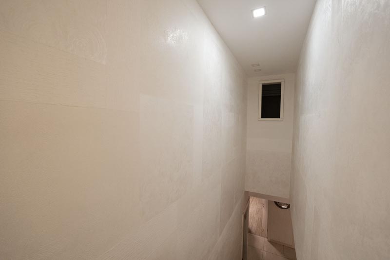 The clean horizontal paneling adorning multiple walls throughout the space creates subtle texture and visual rhythm. These bands add dimensional interest to otherwise flat surfaces while maintaining the minimalist aesthetic central to contemporary design. The precision required for this installation showcases the meticulous craftsmanship that separates exceptional renovations from ordinary updates.