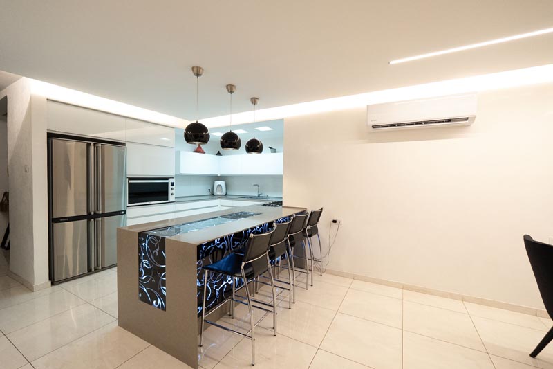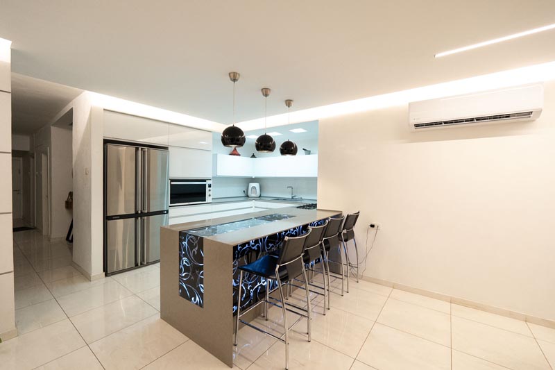 The kitchen renovation represents the most dramatic transformation in this project. Moving beyond traditional enclosed kitchen concepts, this design embraces the kitchen as a social hub where cooking, entertaining, and daily life intersect.